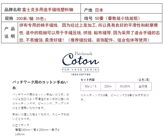 日本富士克(FUJIX)进口高品质进口全棉线 缝衣缝纫手缝线 压线