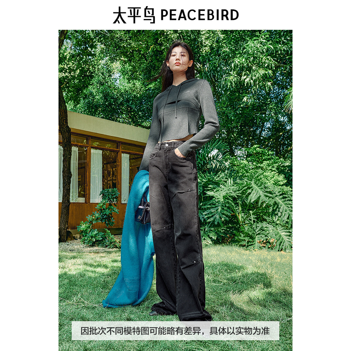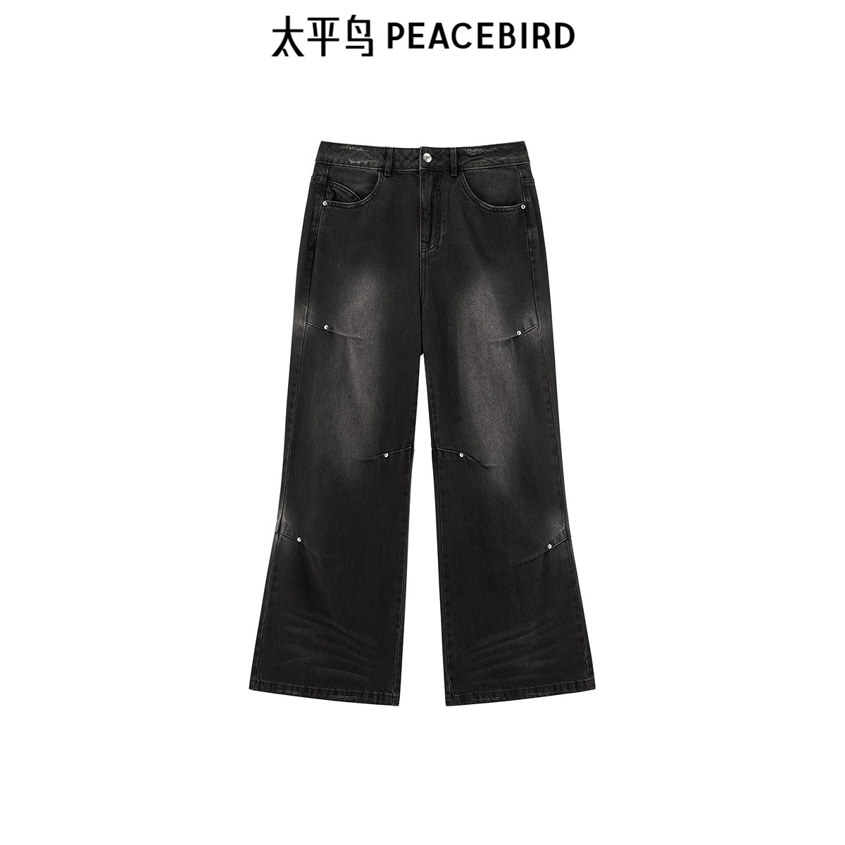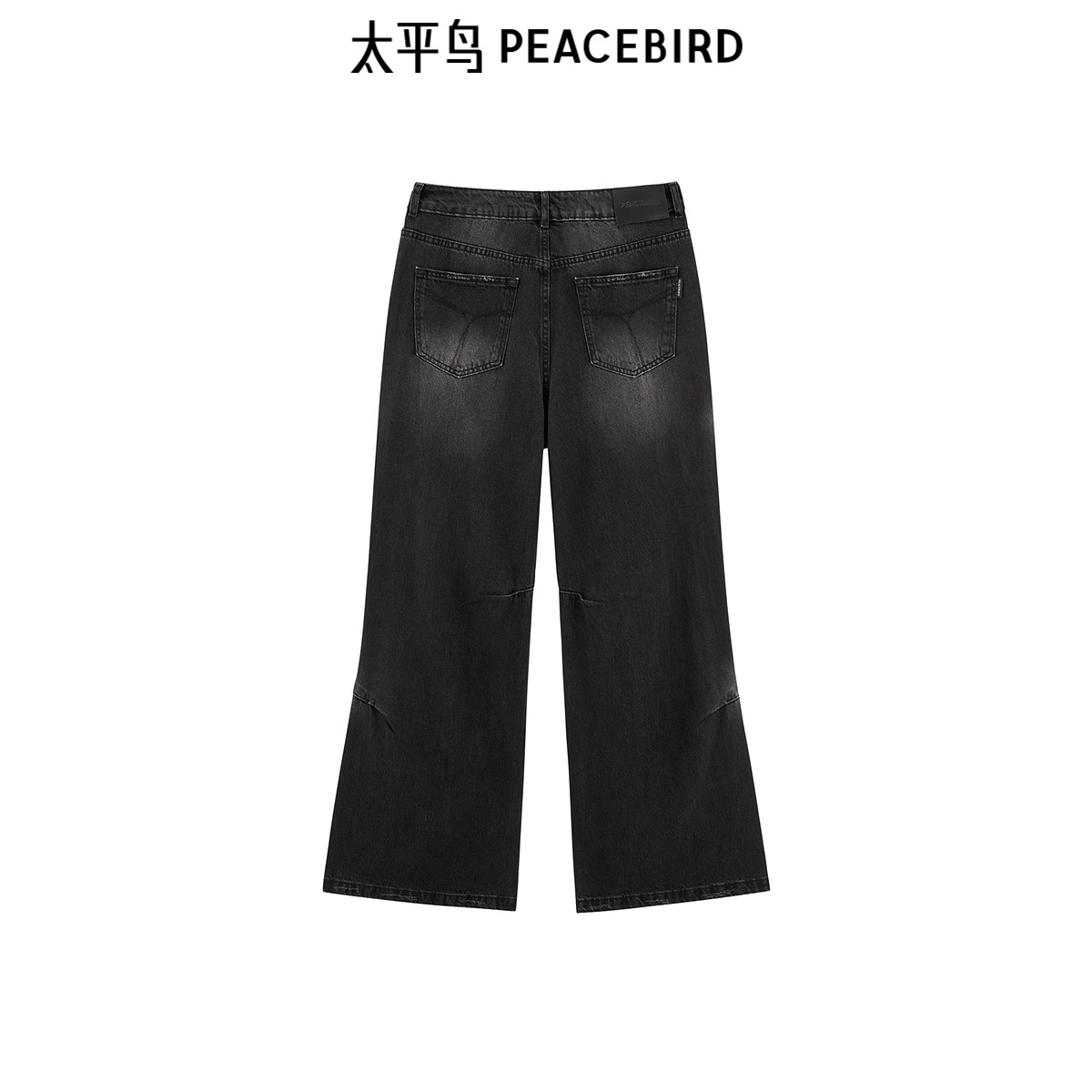 太平鸟高腰阔腿喇叭裤2025年春夏中黑水洗牛仔裤A3HAF1128