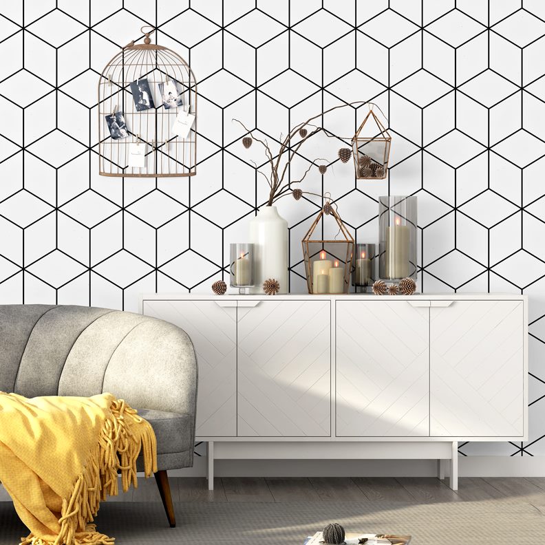 现代简约 卧室客厅北欧风格壁纸几何墙纸ins网红电视背景黑白格子