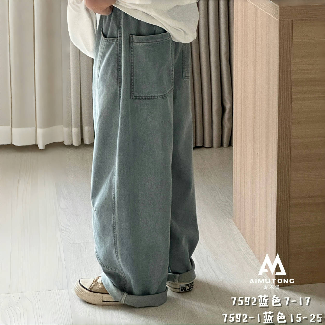 爱木橦夏季新款童装男童女童裤子老爹宽松薄软牛仔裤大童长裤7592