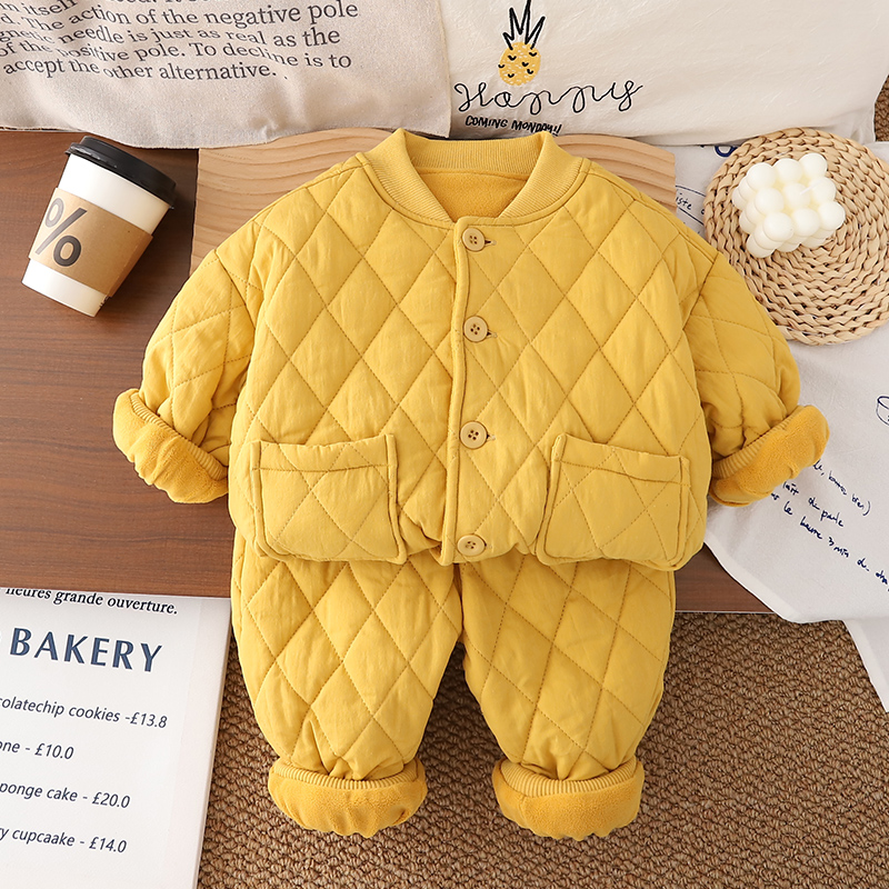 宝宝冬季套装加厚棉服家居服婴儿衣服秋冬男女童加绒夹棉两件套潮