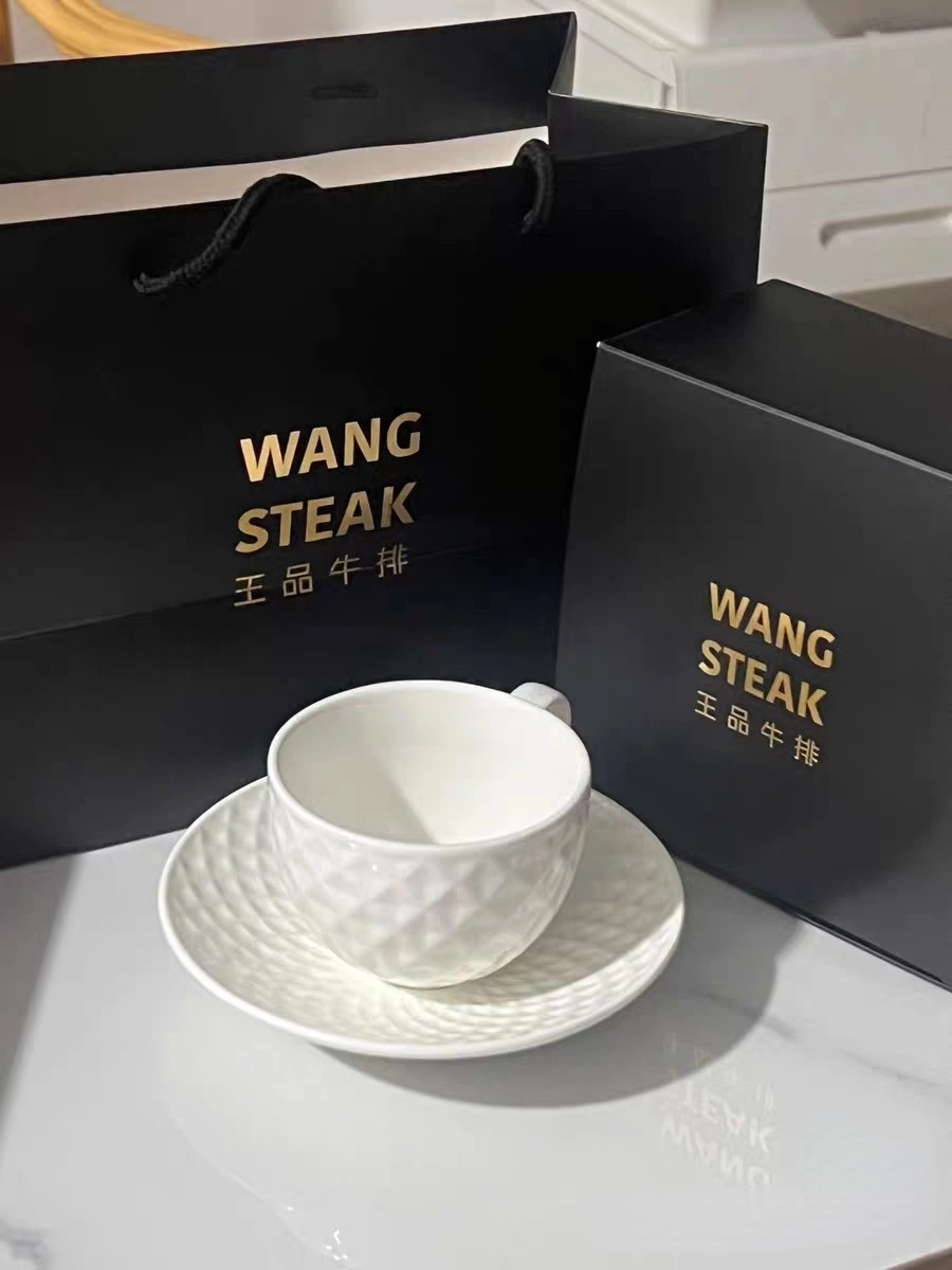 王品牛排咖啡杯碟套装白色做工精致菱格纹陶瓷送礼咖啡茶水杯