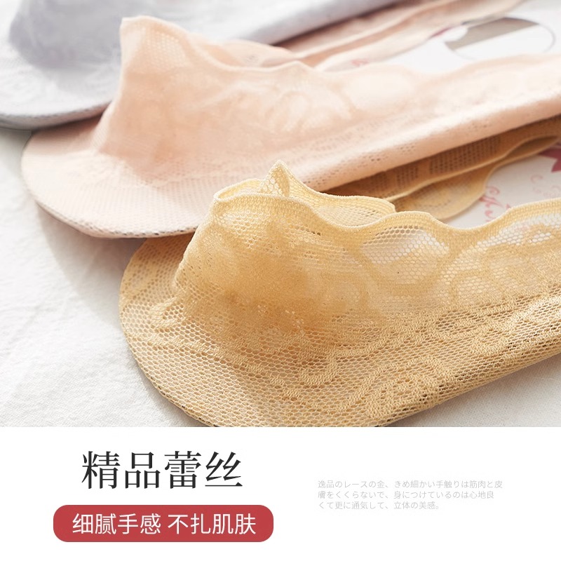 船袜女隐形袜子夏季薄款纯棉袜底蕾丝浅口防滑不掉跟夏天单鞋袜套