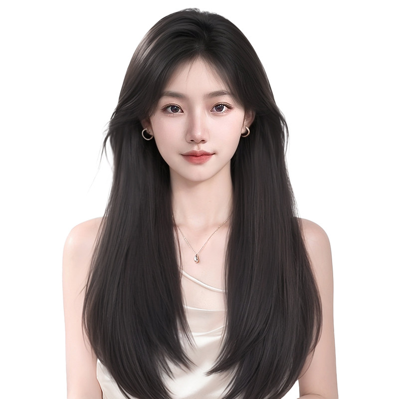黑长直中分刘海全头套女日常自然仿真人发丝免发网头顶补发块假发