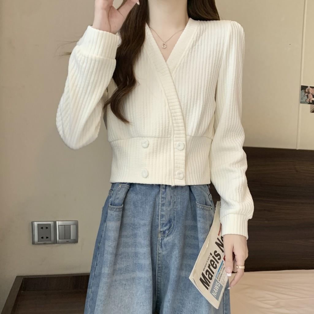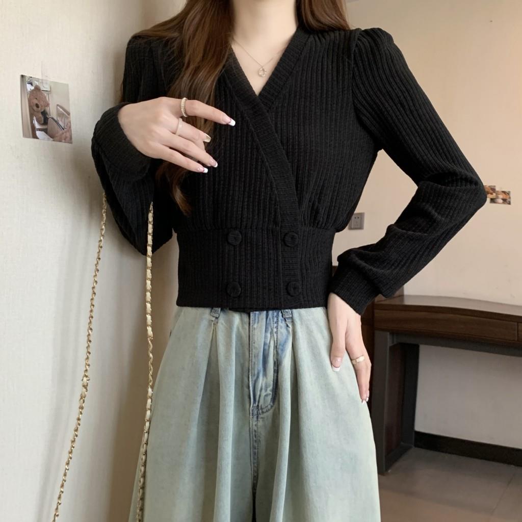 秋冬季大码独内搭正肩毛衣女秋胖mm短款V领针织打底衫修身上1008n