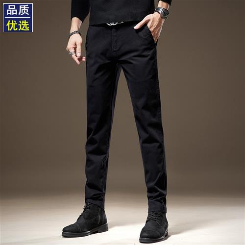 高端纯棉商务西裤男修身小脚韩版黑色长裤子男新款直筒男士休闲裤