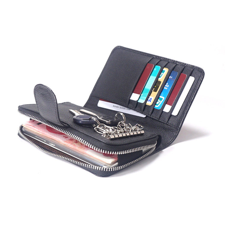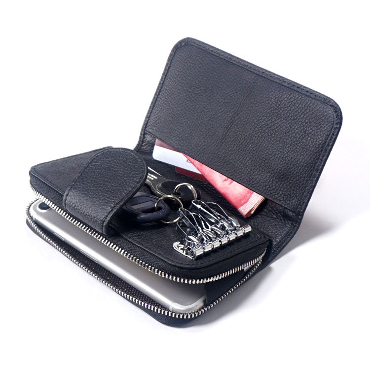 头层牛皮拉链手机包钥匙包男女士