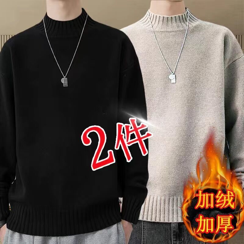 秋冬季男士毛衣加绒加厚半高领纯色打底衫保暖一体绒百搭大码上衣