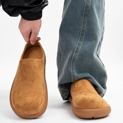 小土豆勃肯鞋男冬季加绒一脚蹬包头半拖棉鞋通勤复古大头穆勒鞋女