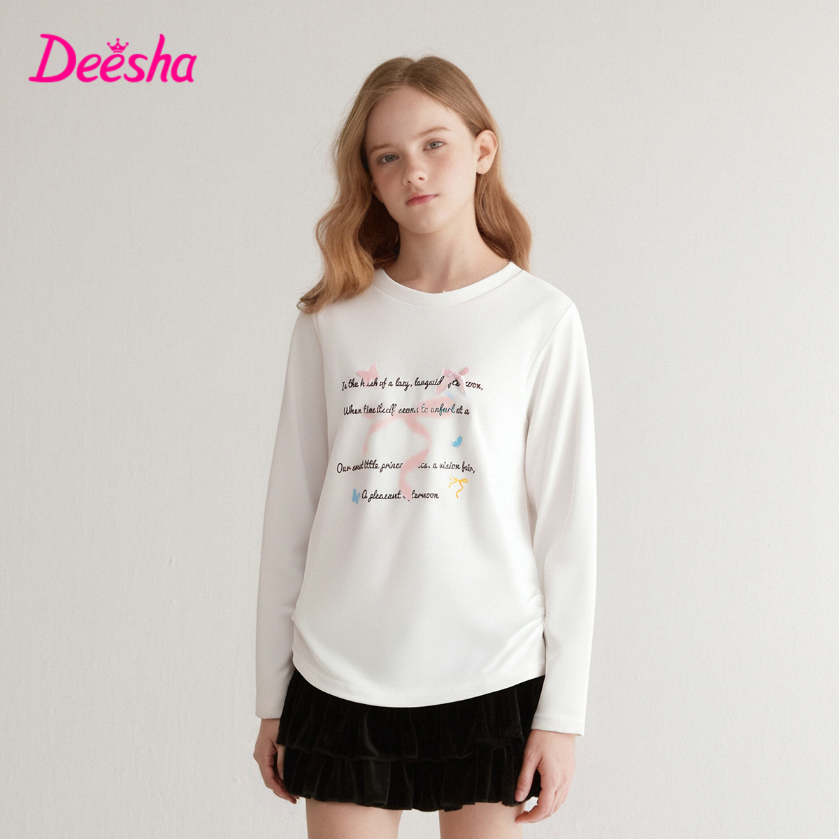 笛莎童装女童T恤2025秋季新款中大童儿童小女孩印花圆领上衣春秋