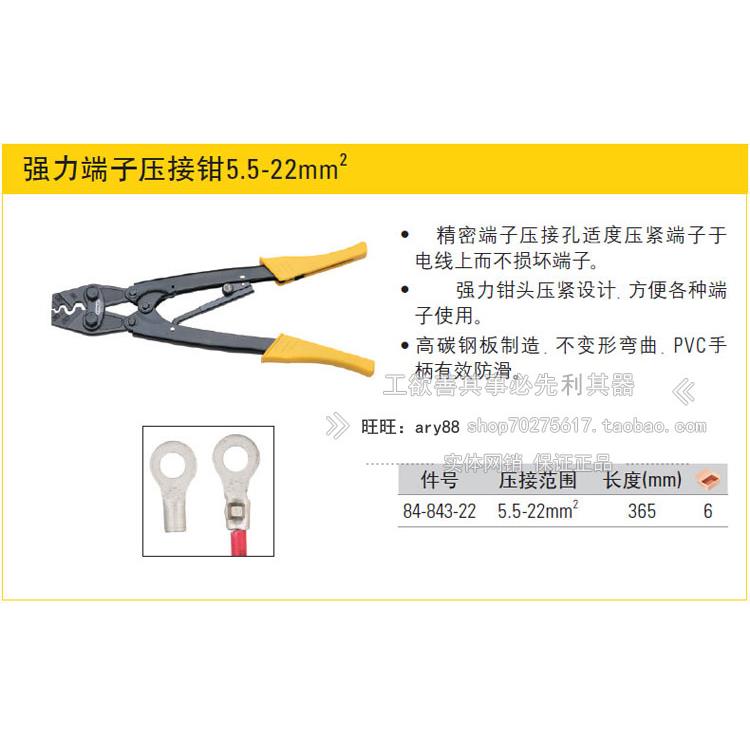 史丹利 强力端子压接钳 长度365MM 压接范围5.5-22MM2 84-843-22