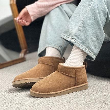 迷你周冬雨同款雪地靴女短靴羊皮毛一体东北加厚棉鞋浅口保暖加厚
