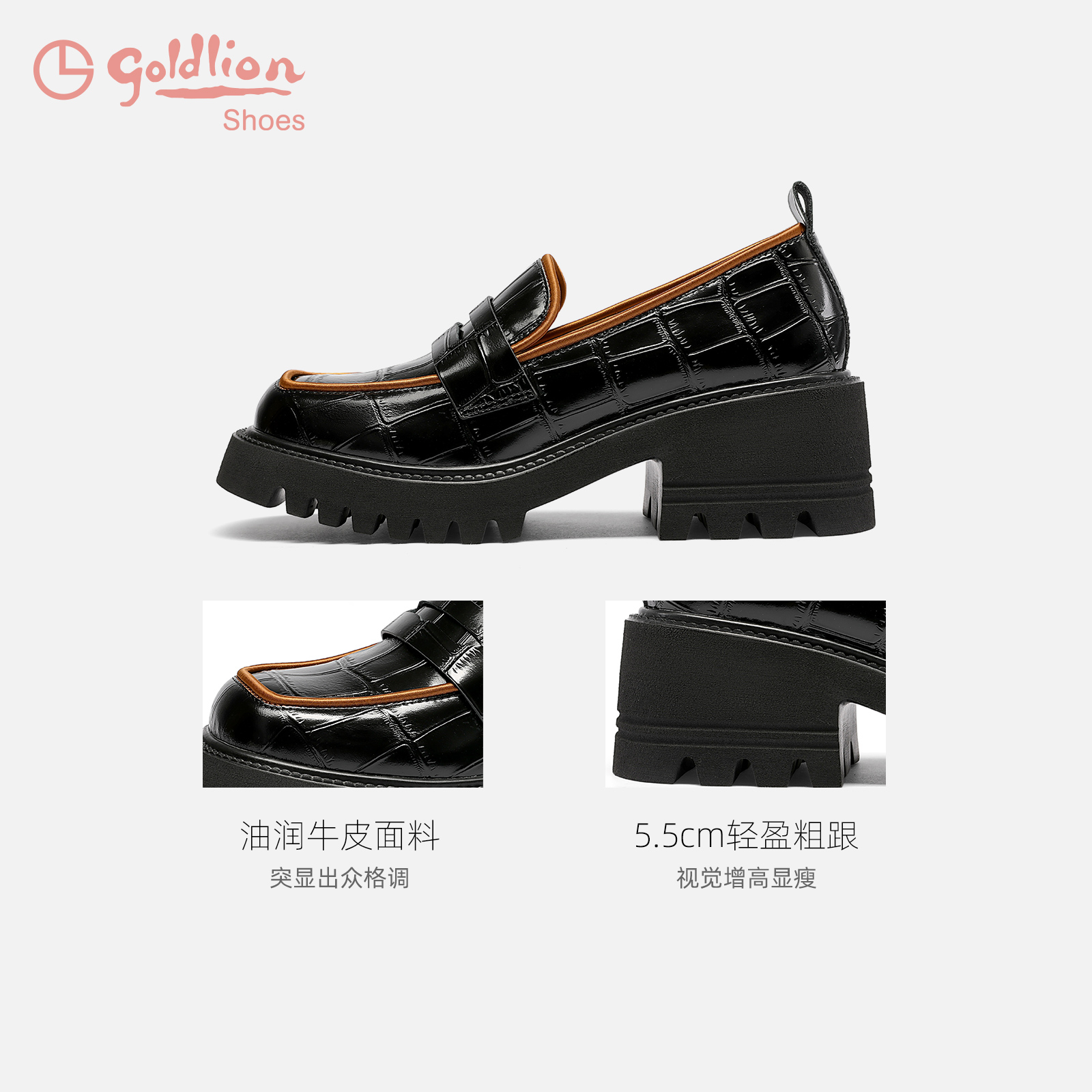 金利来一脚蹬厚底乐福鞋春秋新款女鞋鳄鱼纹真皮百搭英伦风小皮鞋