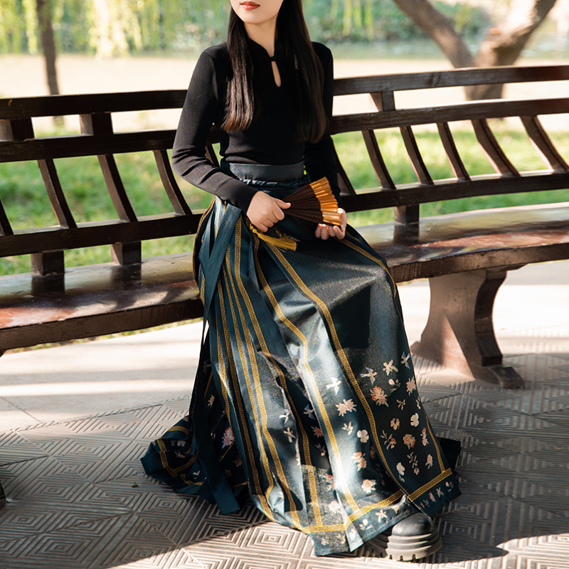 爱奇葩花鸟图金边马面裙