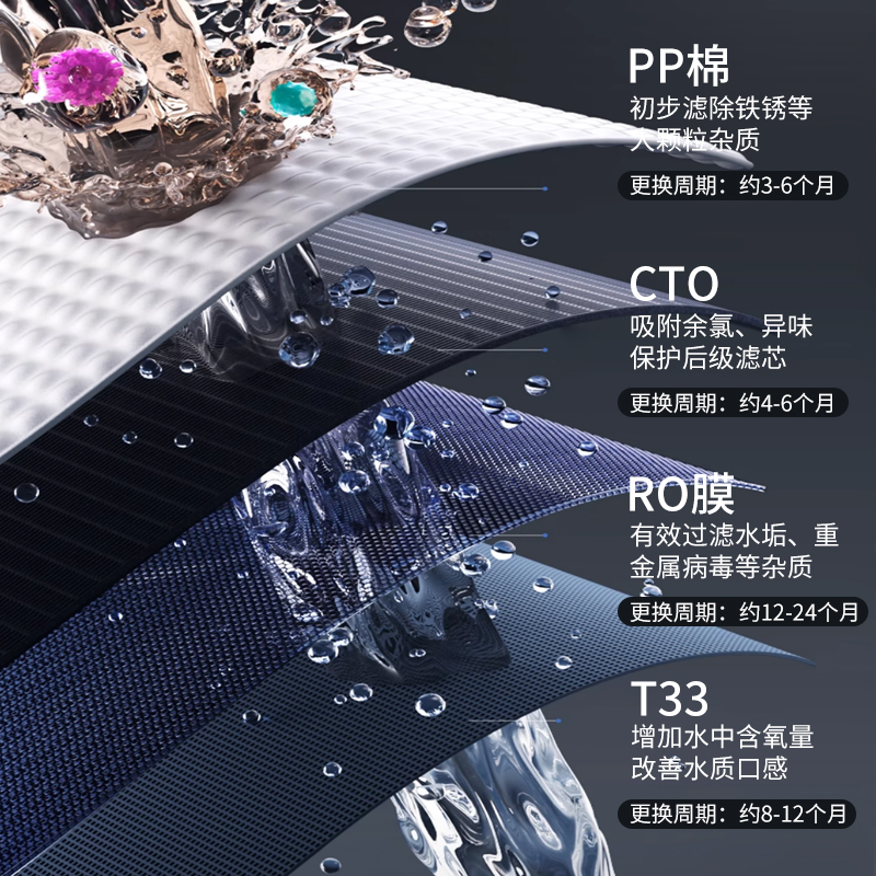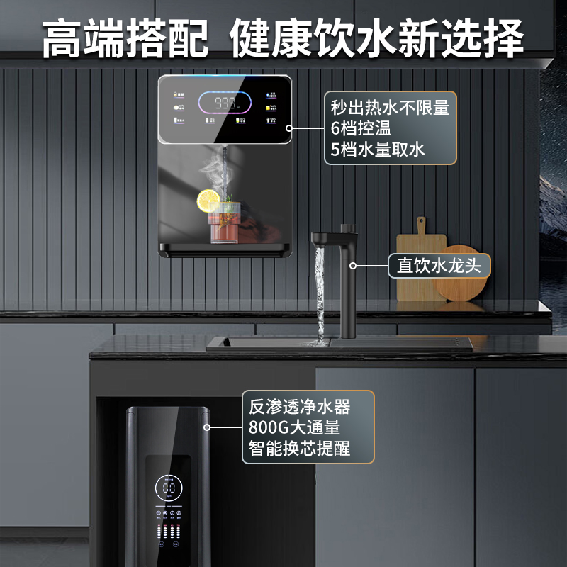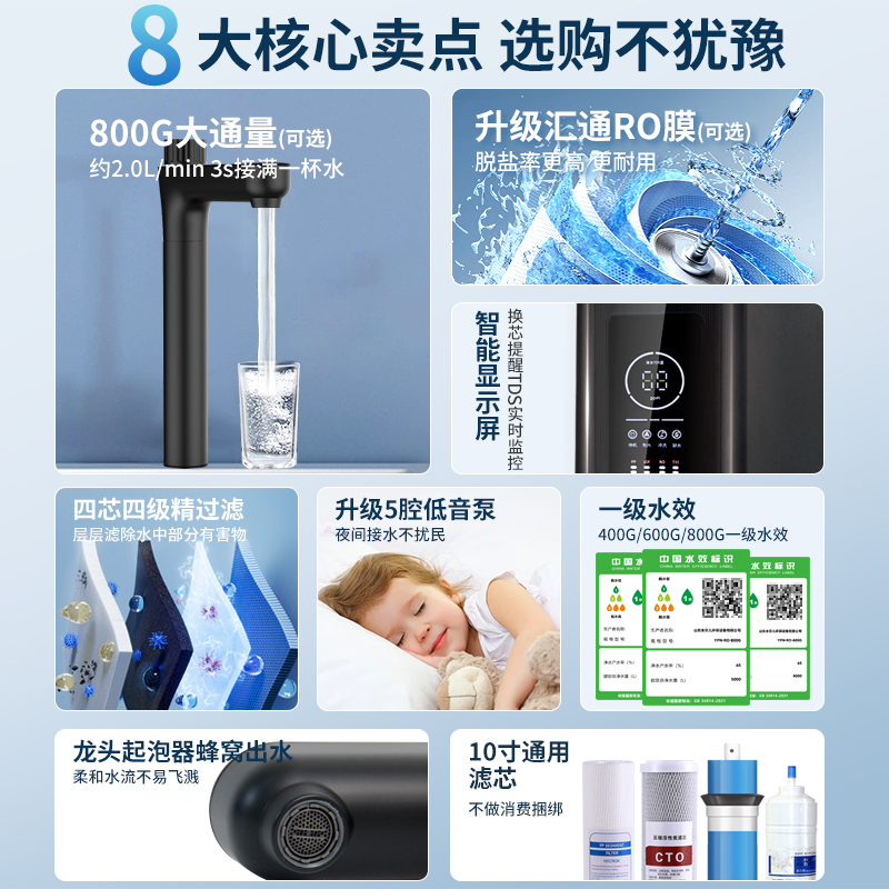 800G家用净水器ro反渗透直饮纯水机智能换芯提醒TDS除垢400净水机