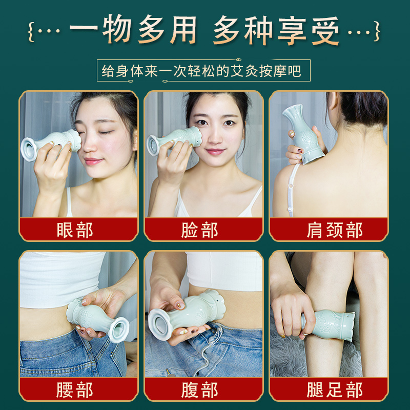 陶瓷头艾灸罐家用疗面部头部器具工具随身灸美容院桃花灸盒刮痧
