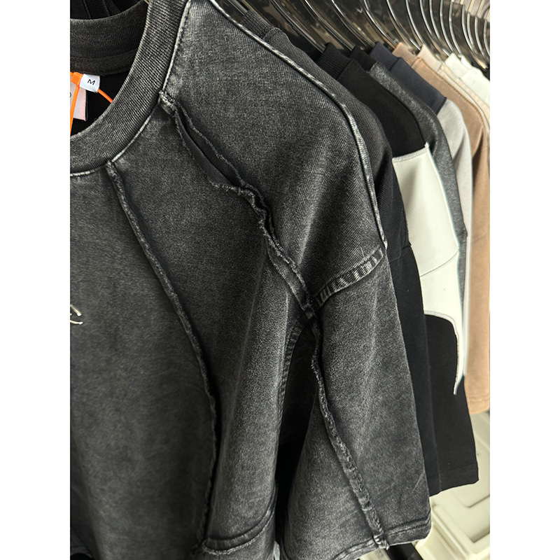 ooohmygo美式复古分割毛边T恤男