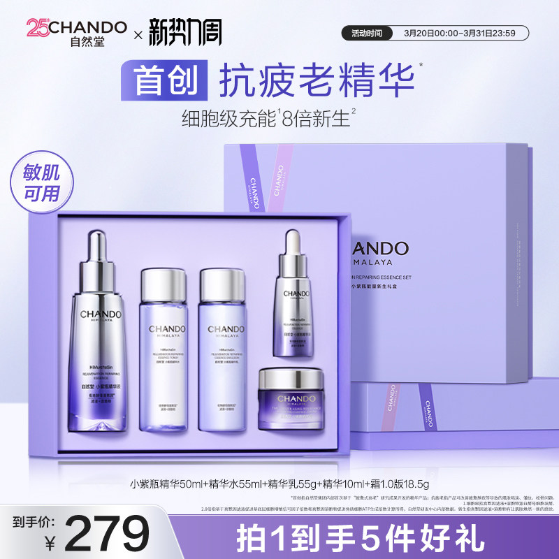 【抢92折加补】自然堂小紫瓶精华抗皱紧致淡纹修护精华液敏肌可用