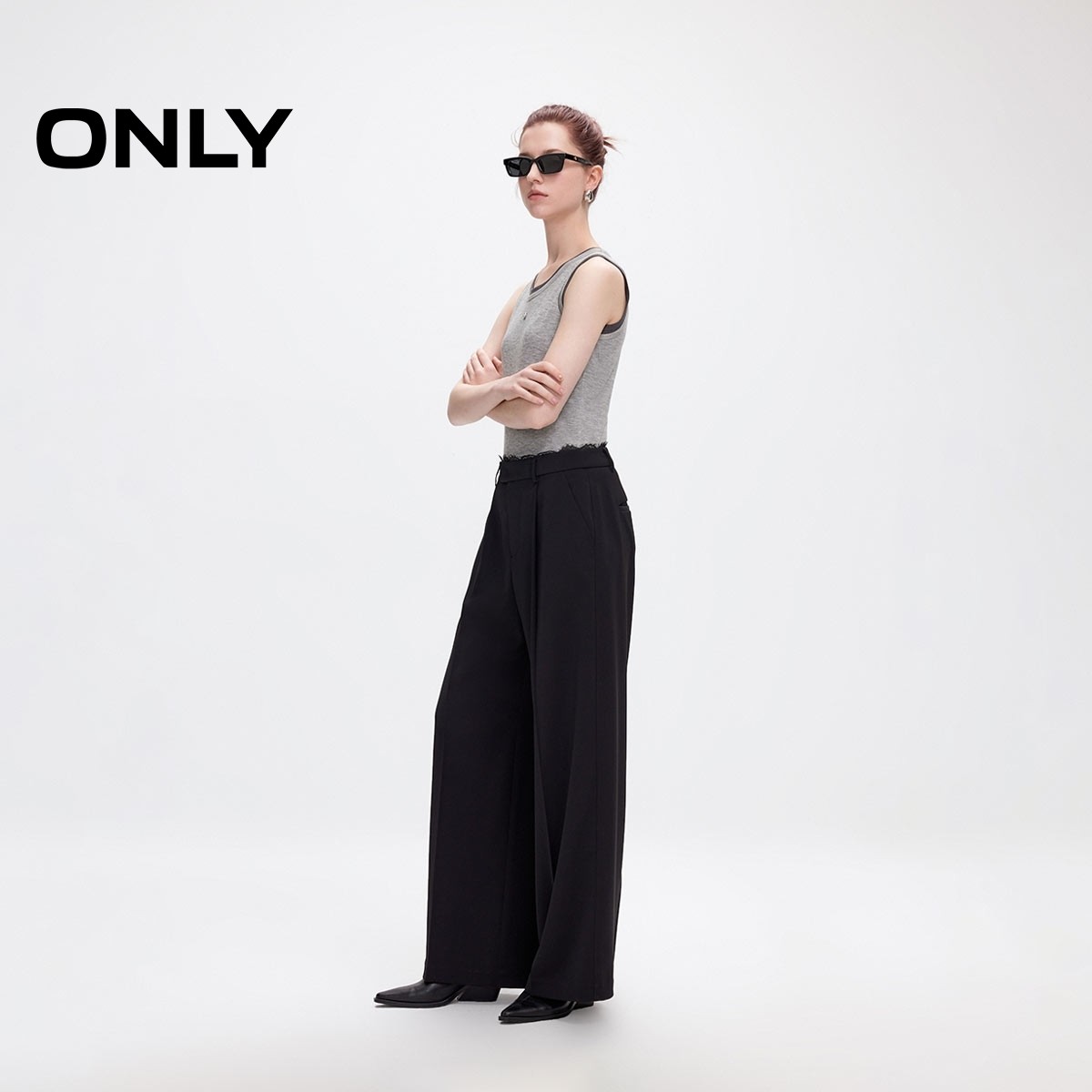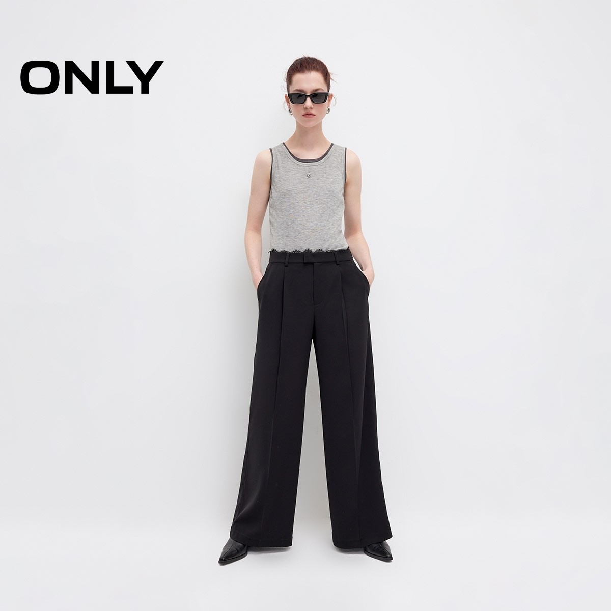 绫致ONLY2025夏季新款慵懒蕾丝拼接宽松直筒西装裤休闲裤女
