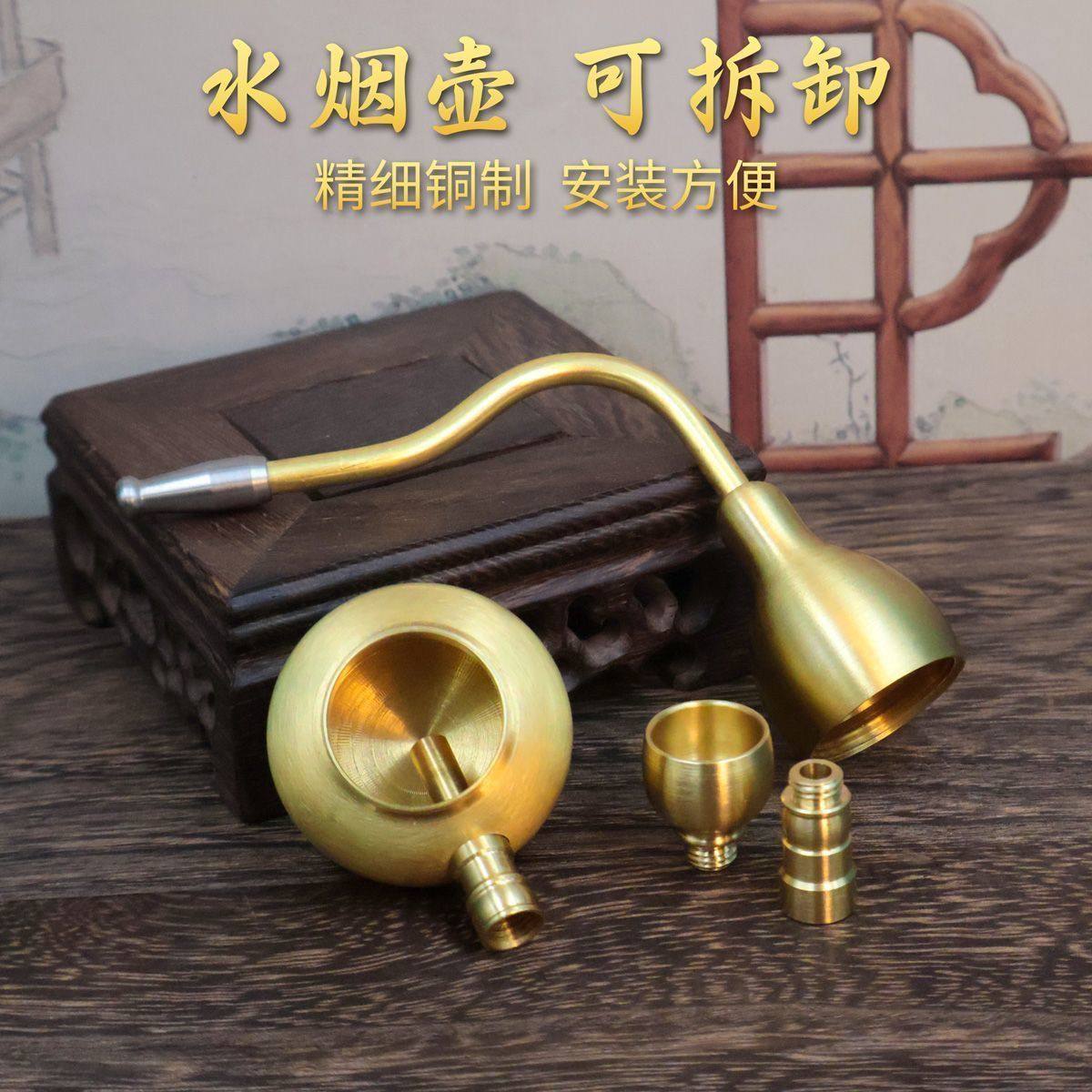 葫芦轻奢加厚过滤水烟斗便携两用水烟锅耐高温火源高档铜帮壶承