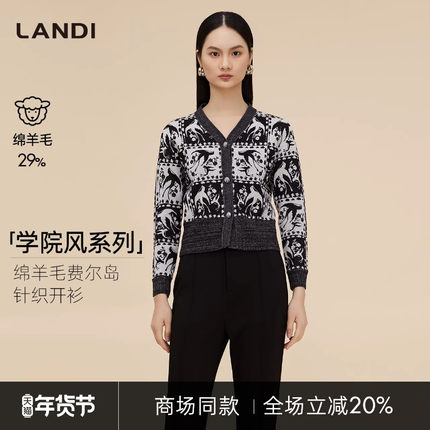 [商场同款]学院风系列LANDI绵羊毛费尔岛针织开衫女2025冬新品
