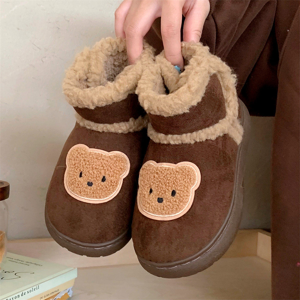 细细条 软萌小熊儿童短靴棉鞋保暖男童女童外穿可爱亲子雪地靴冬