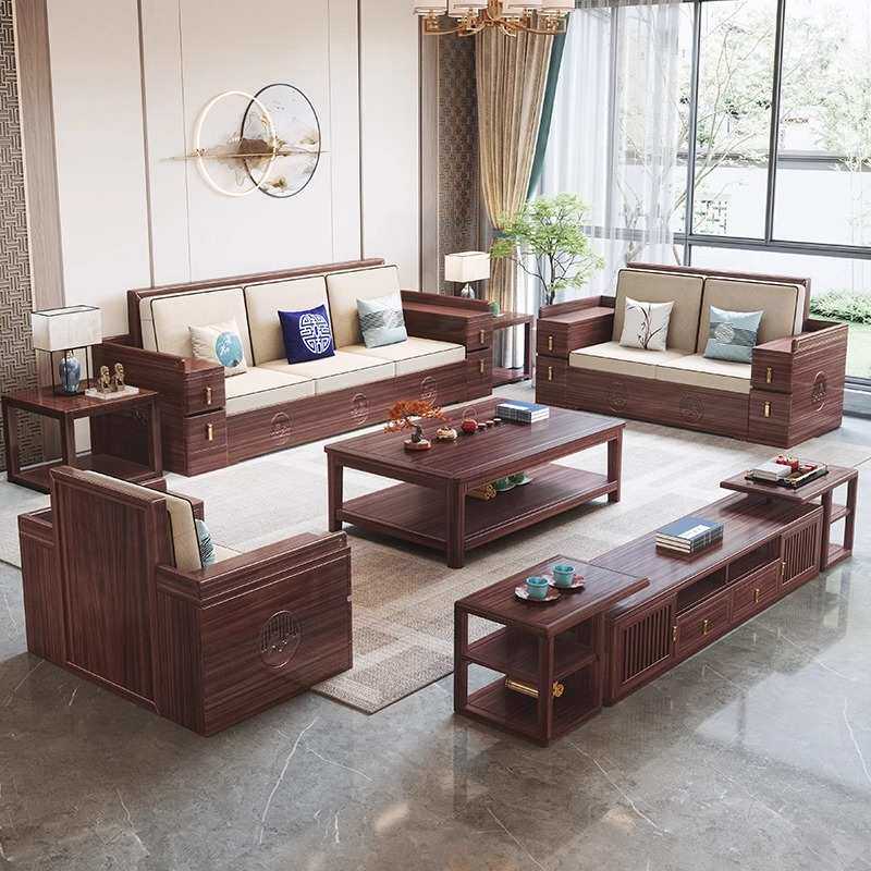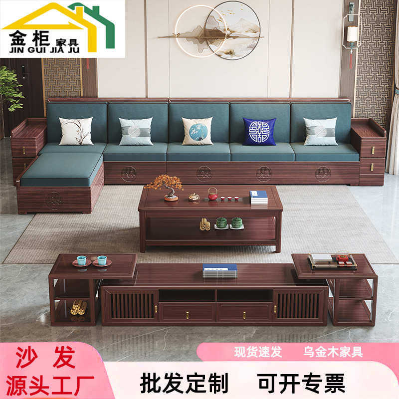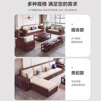 新中式乌金木实木沙发冬夏两用现代中式木质客厅家具全实木木沙发