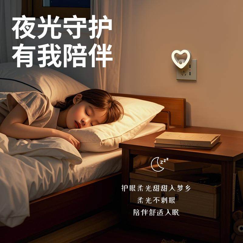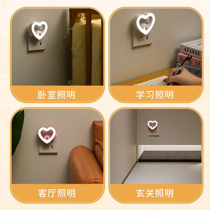 简约浪漫爱心插电小夜灯开关调光柔光护眼婴儿喂奶卧室床头玩手机