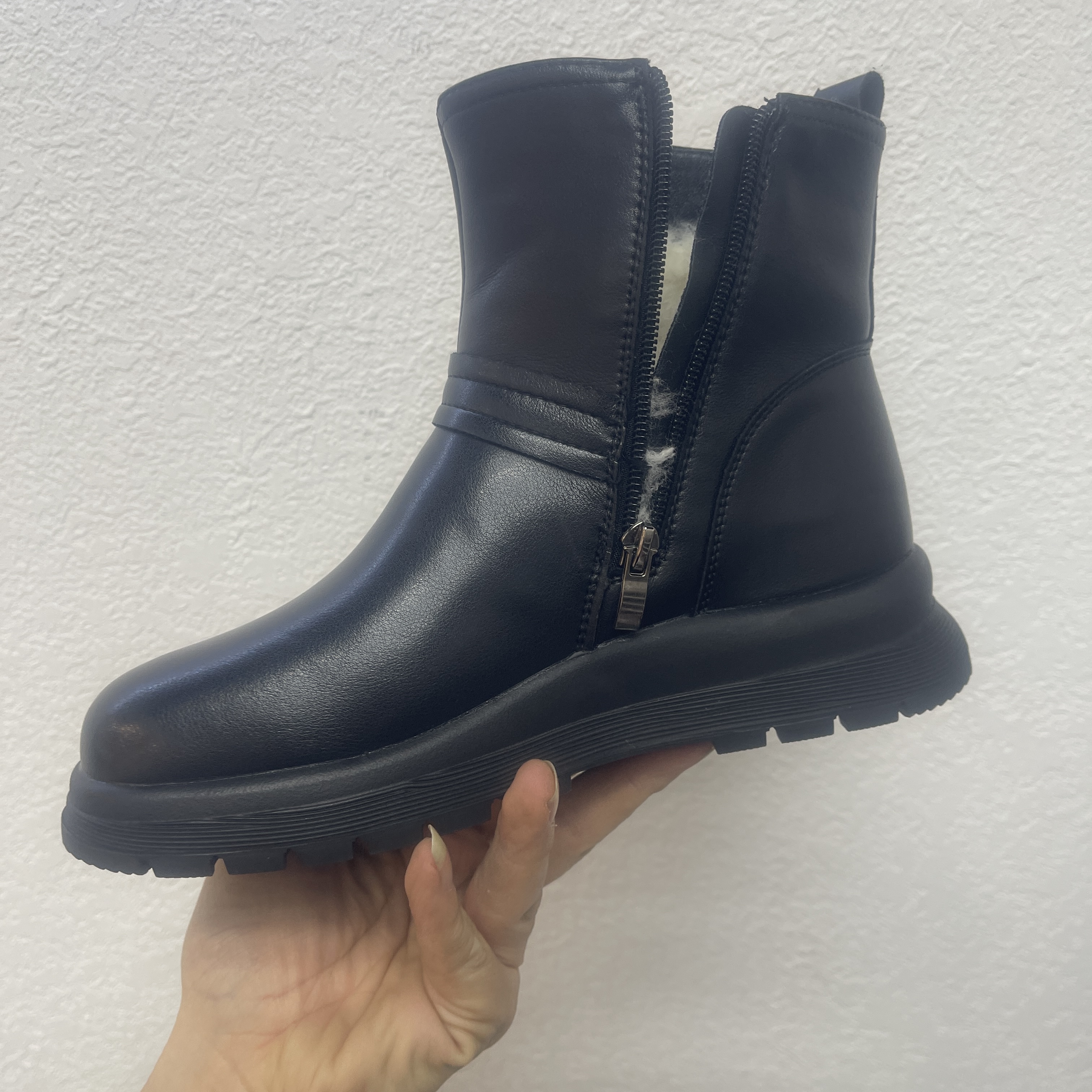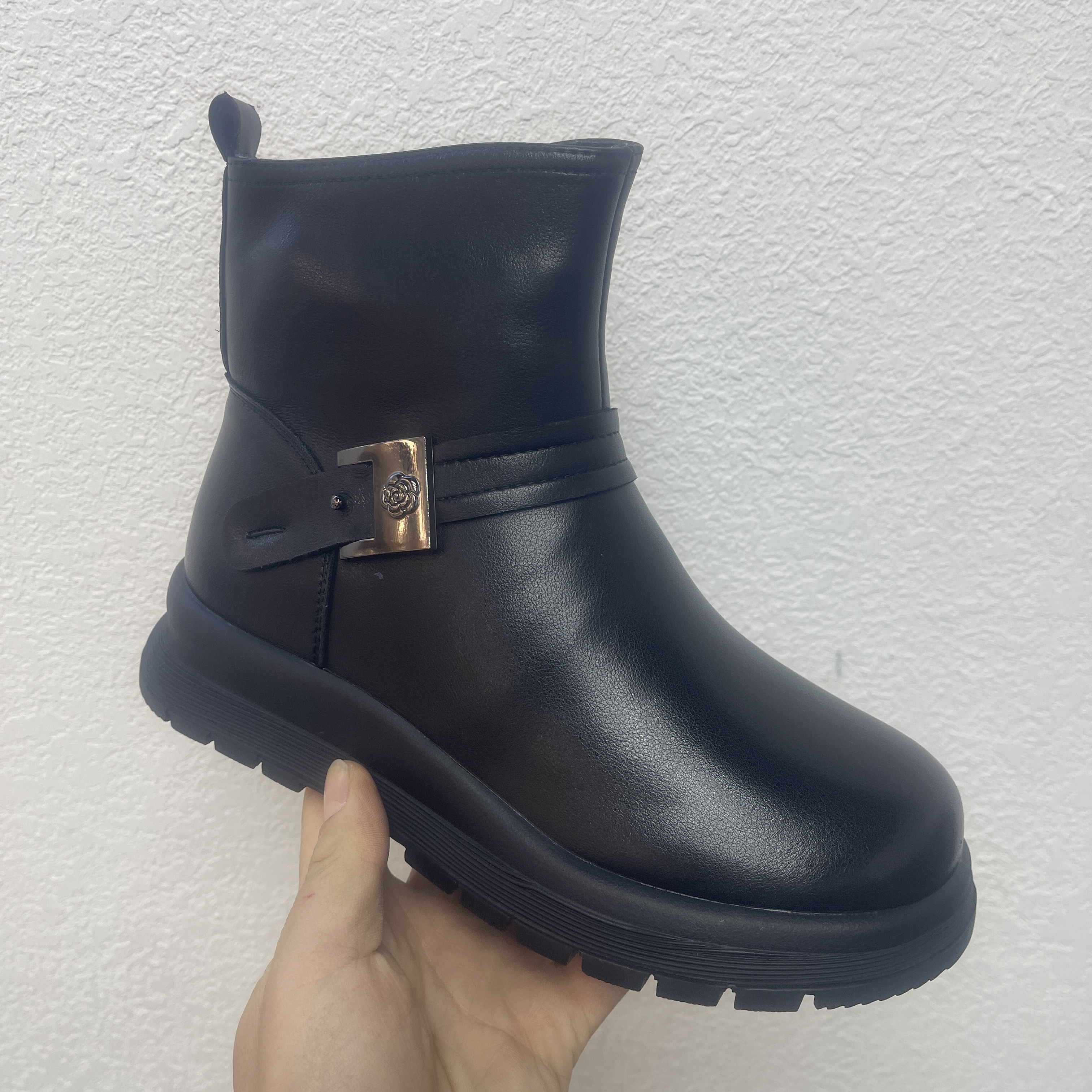 外贸秋冬新款皮毛一体厚底短靴舒适软底妈妈鞋防滑耐磨女羊毛棉靴