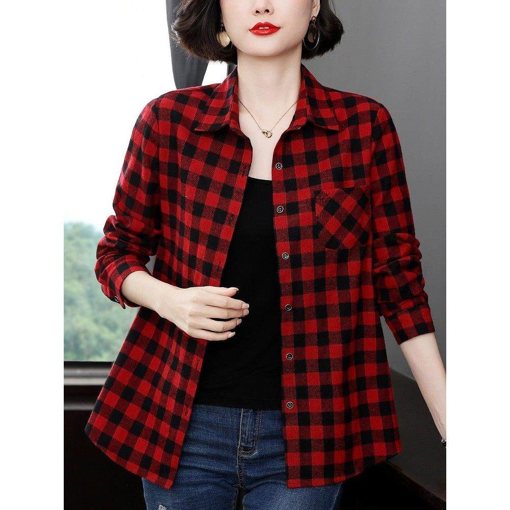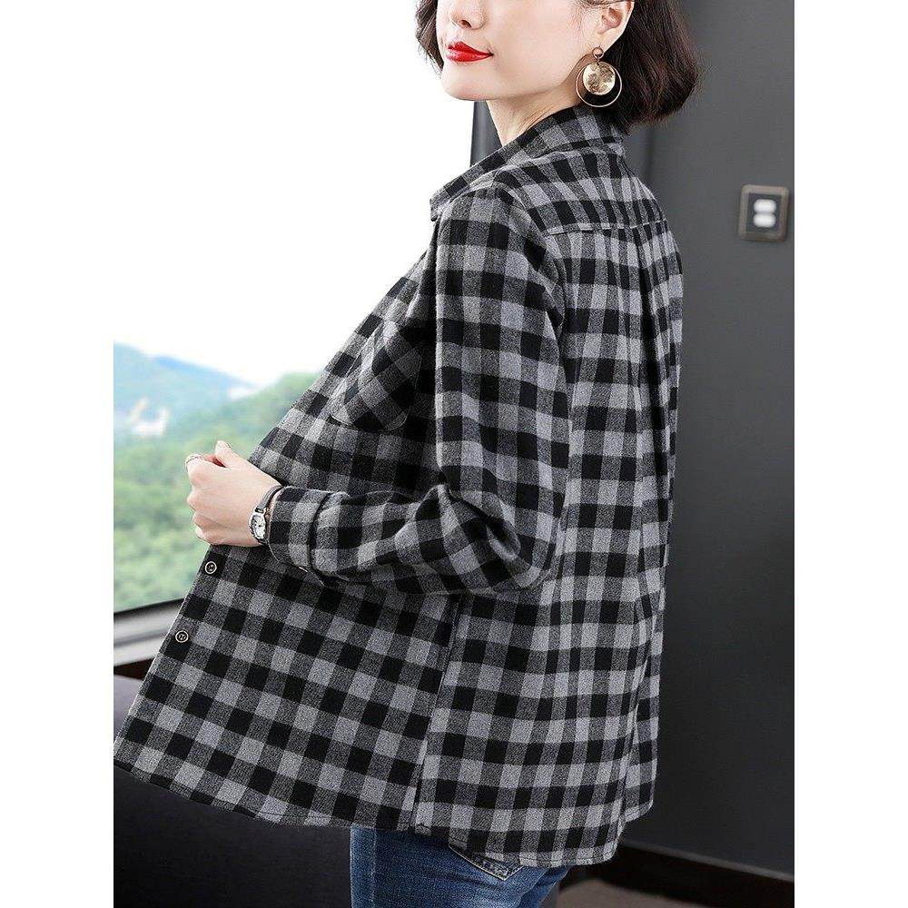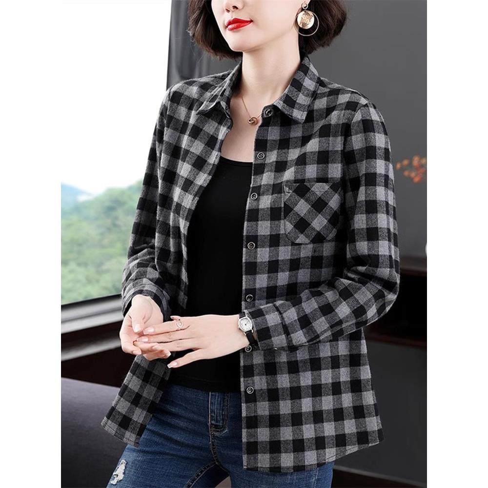 纯棉格子衬衫女2025春秋装新款宽松显瘦百搭纽扣开衫长袖T恤衬衣