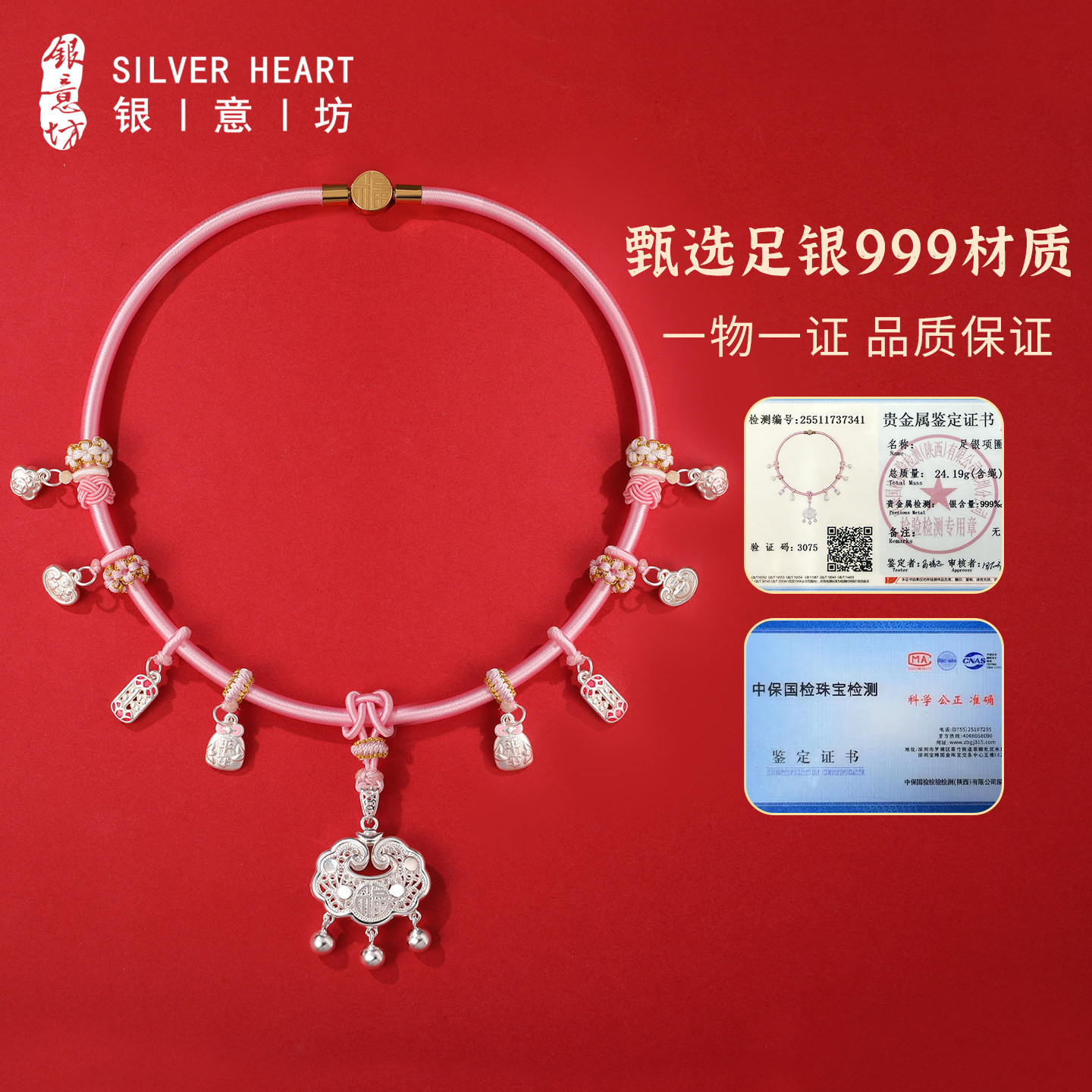 宝宝项圈满月婴儿银锁长命锁纯银999平安锁一岁女宝宝满周岁礼物