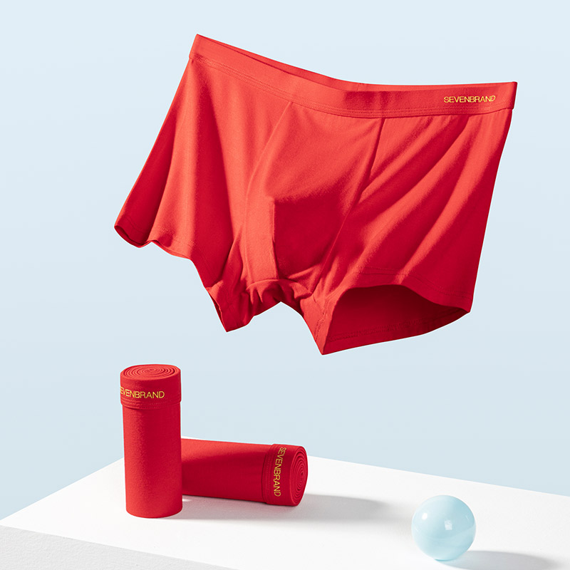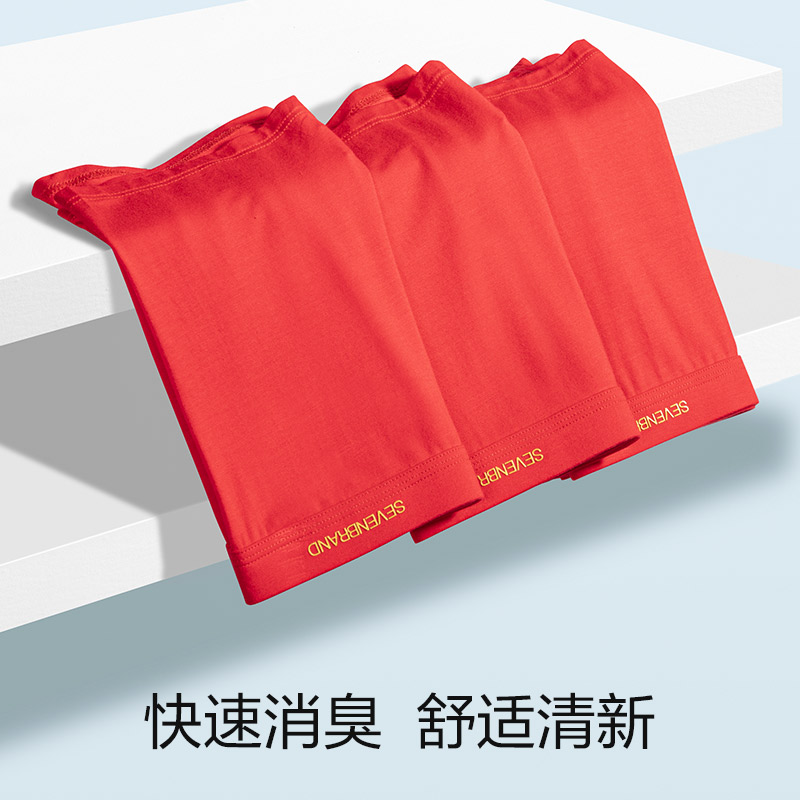 柒牌内裤男士属兔年大红色四角裤男生平角短裤头红3条装裤衩