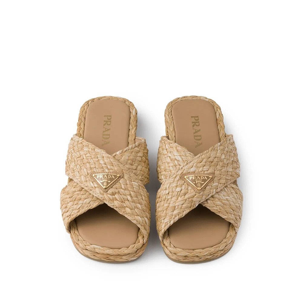 Prada 普拉达 女士 拉菲草编织十字交叉凉拖凉鞋 1XX750F020027