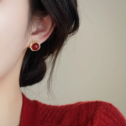「南红玛瑙」红玛瑙新中式耳饰蚊香盘耳夹无耳洞轻奢耳钉新年耳环