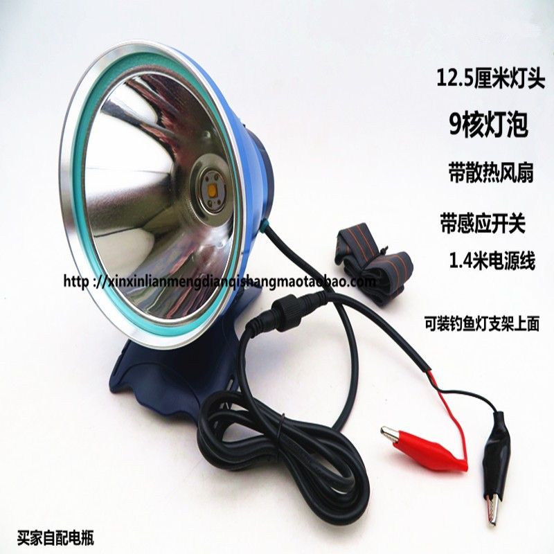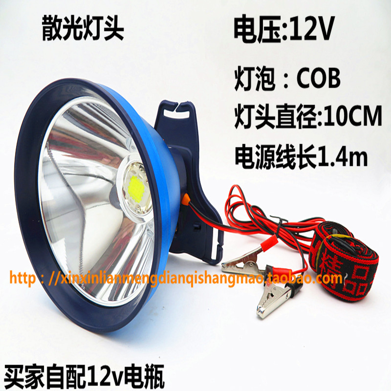 12v头灯头戴式24vLED户外强光散光聚光钓鱼36核大光斑外接电瓶灯