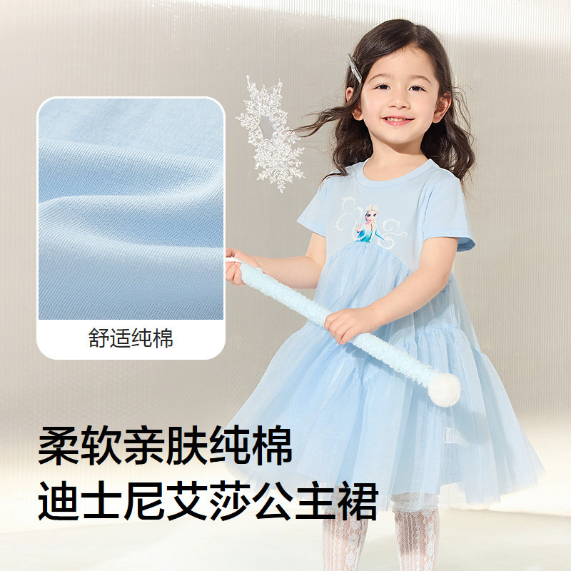 【迪士尼IP】巴拉巴拉宝宝公主裙艾莎连衣裙女童网纱裙2025夏新款