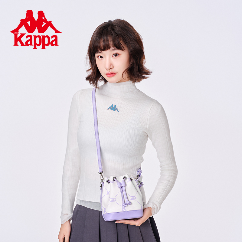 Kappa卡帕 新款正品皮质感水桶包女手提斜挎单肩包时尚潮流圆桶包