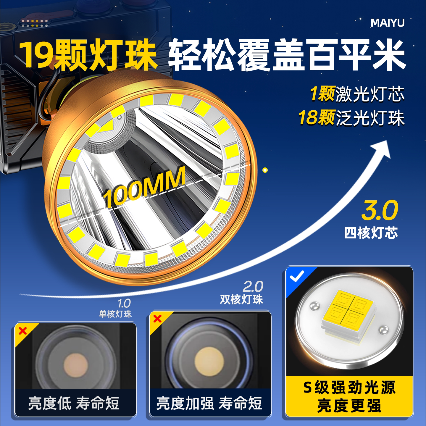 头灯2026新款强光超亮头戴式超长续航钓鱼专用手电筒户外充电照明