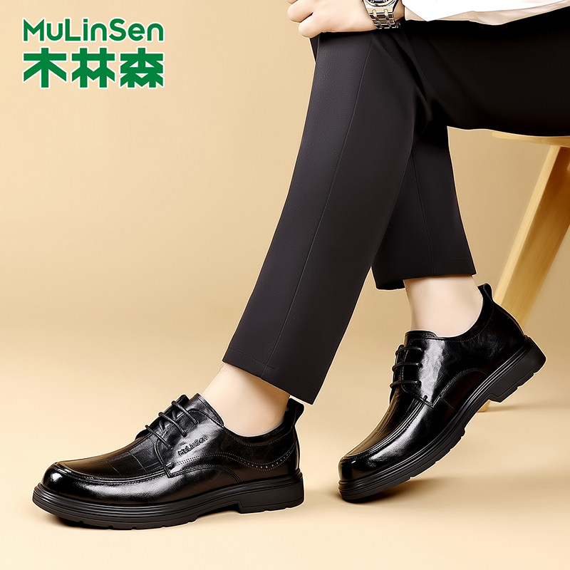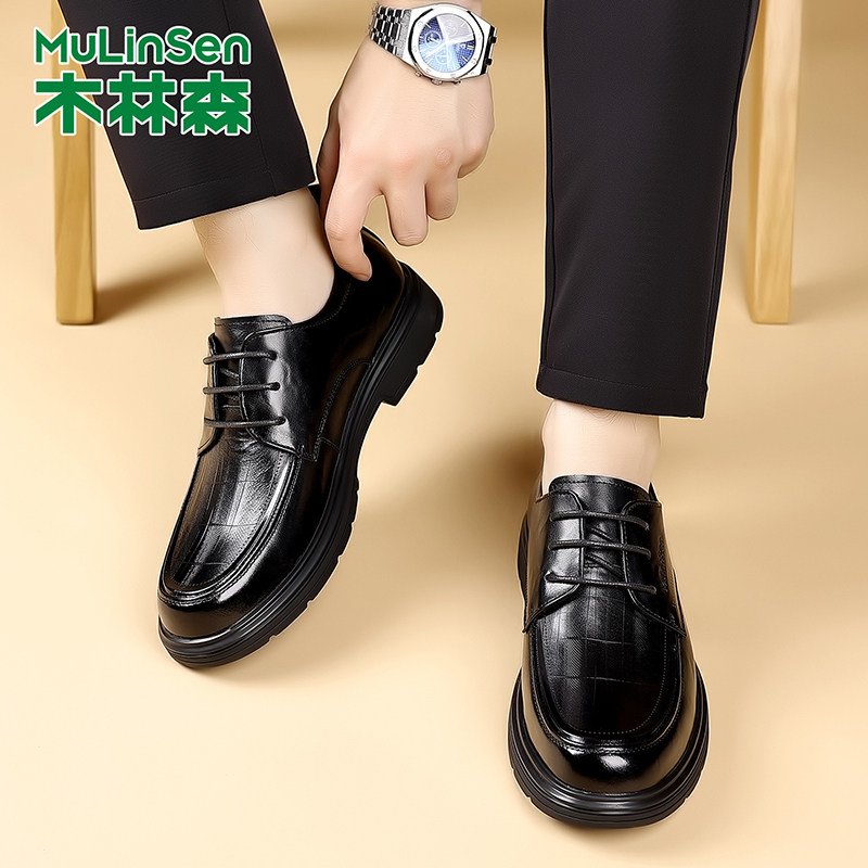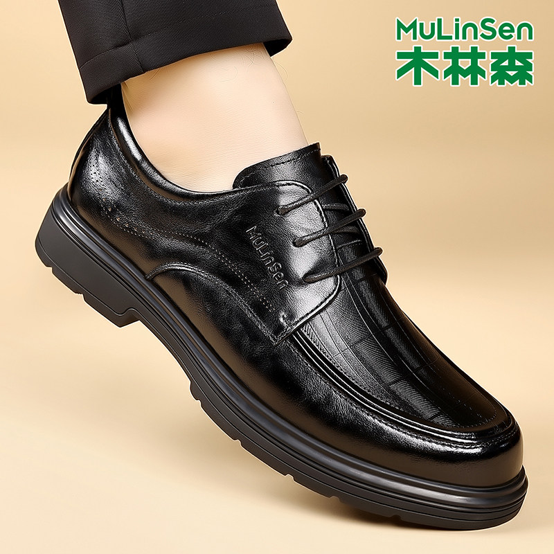 木林森休闲皮鞋男鞋真皮商务系带软底耐磨男士运动小皮鞋牛皮鞋子