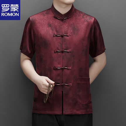 罗蒙唐装男士夏季短袖爸爸装衬衫