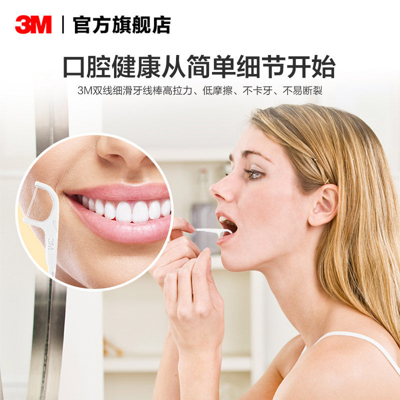 3M细滑牙线棒一次性家庭装安全剔牙清洁牙齿缝双线薄荷不伤牙龈