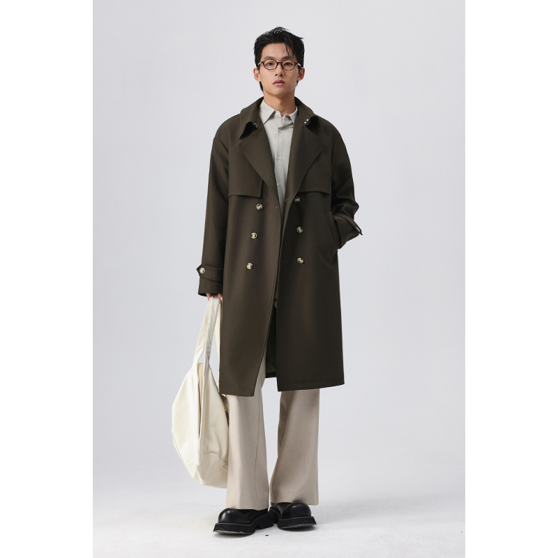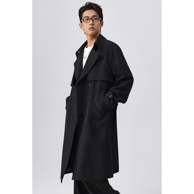 w2x2025春秋季新款双排扣风衣男中长宽松系带外套设计感上衣