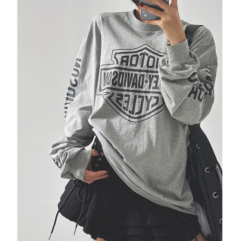 韩国正品女装LAG2025秋季新款时尚通勤字母印花长袖圆领中长款T恤