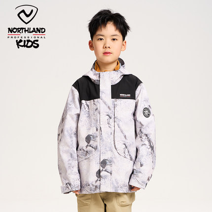 诺诗兰童装男童冲锋衣春秋时尚满印夹克可拆卸防风保暖外套清仓款