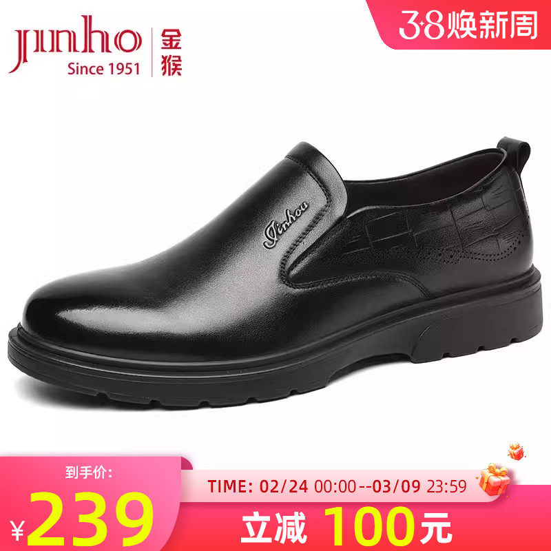 金猴皮鞋男秋季牛皮商务休闲套脚软面软底真皮爸爸鞋男鞋单鞋