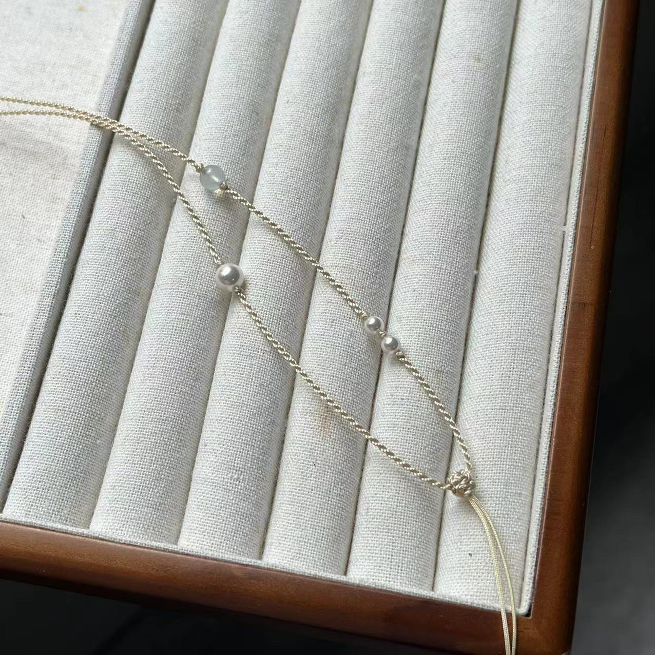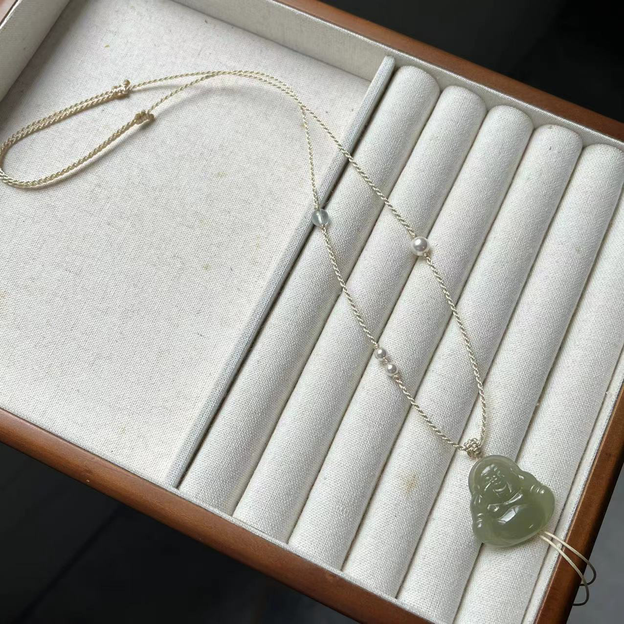 奥地利正品施家珍珠简约项链喜上眉梢玉牌和田玉翡翠佛公金锁挂绳