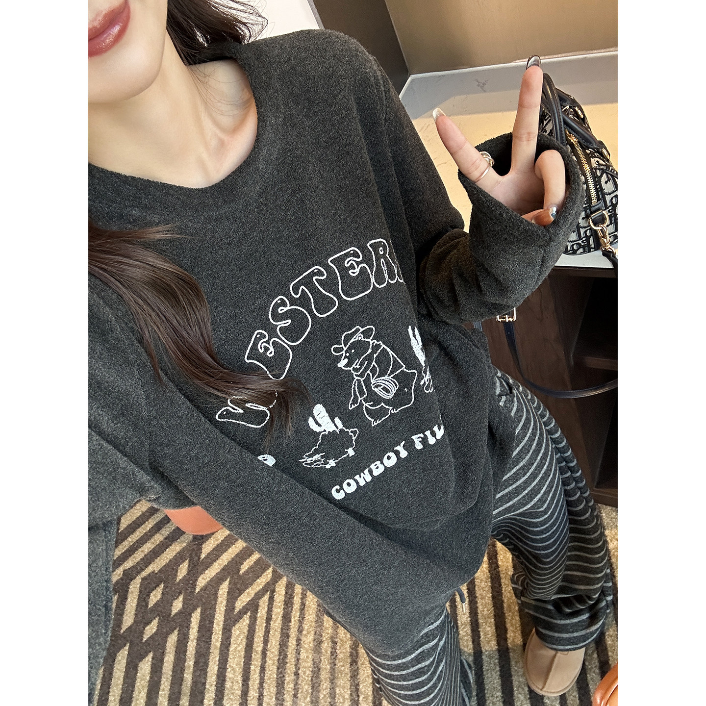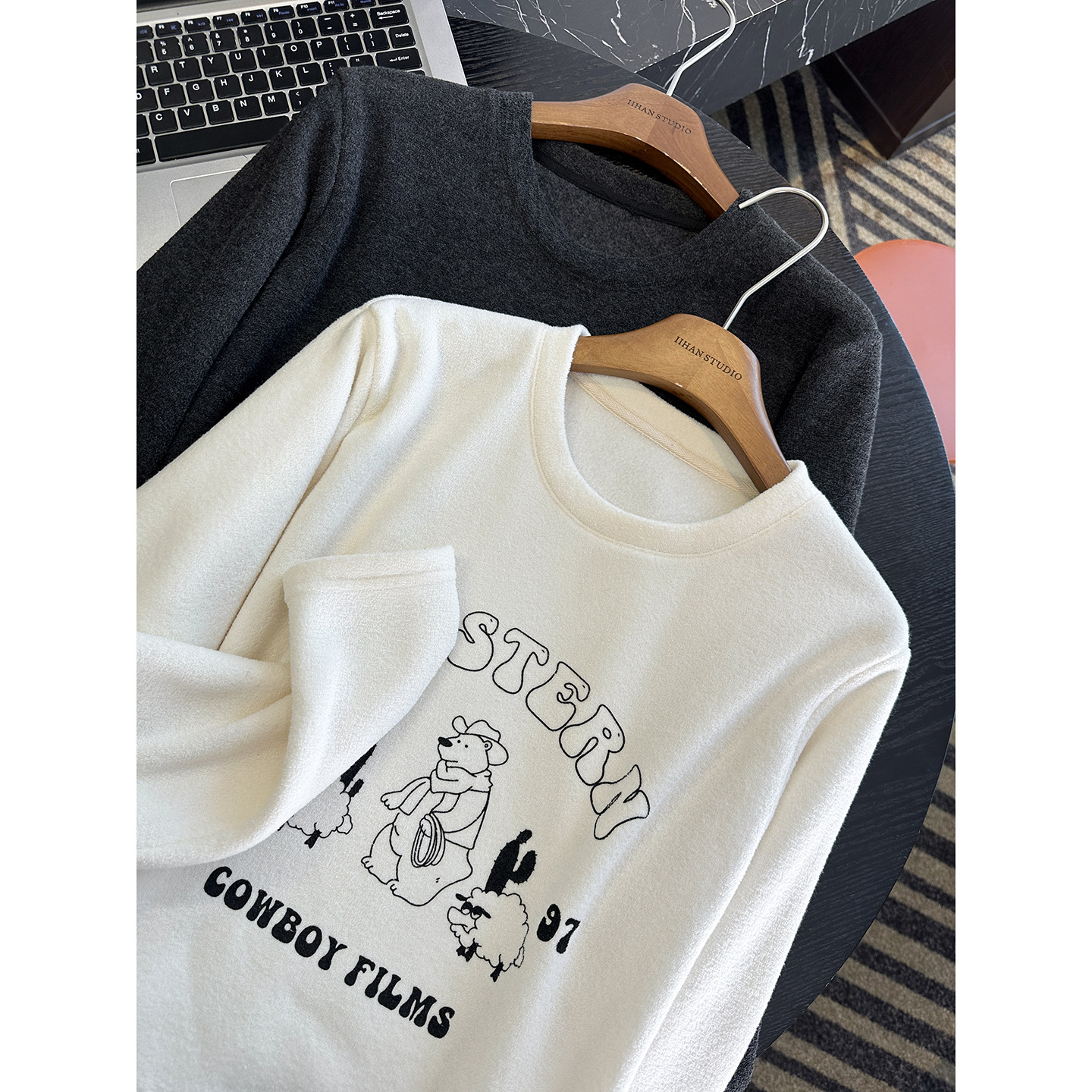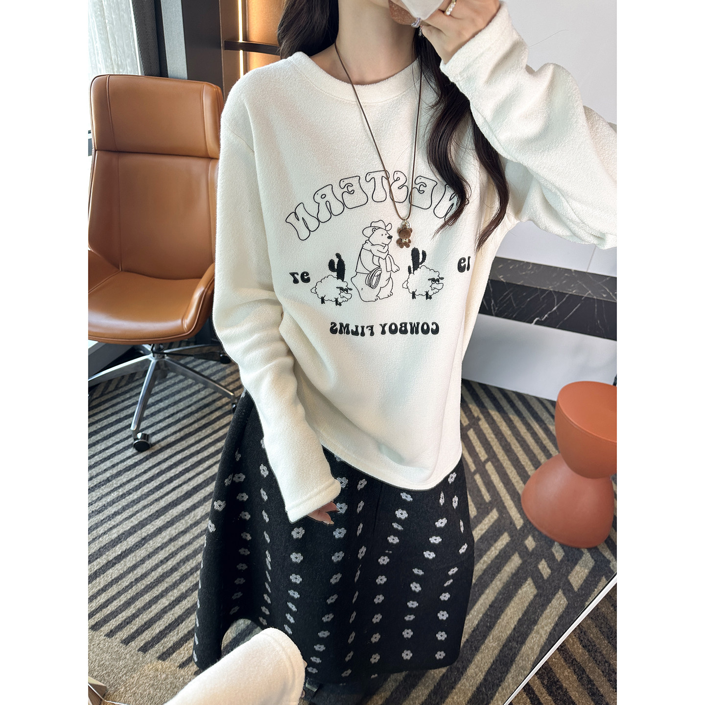 怕冷星人必入!雪芙绒小熊长袖打底衫女秋冬亲肤柔软宽松圆领上衣