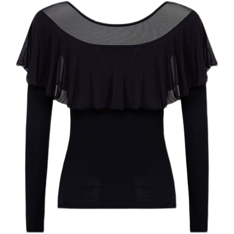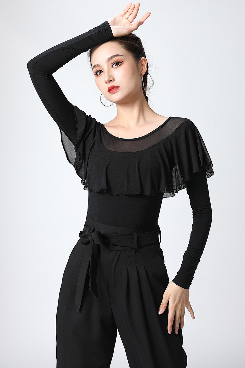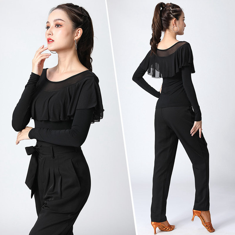 拉丁舞上衣长袖练功服女国标舞女秋冬新款摩登舞服荷叶边跳舞衣服