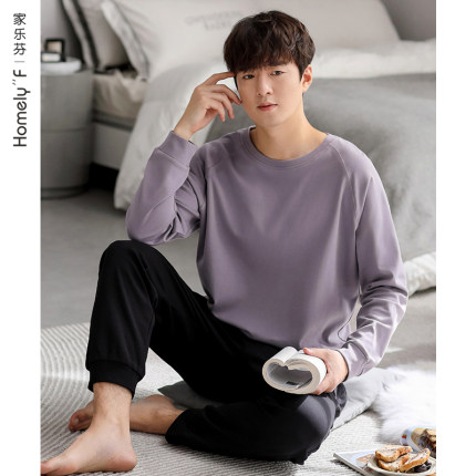 家乐芬睡衣男士春秋款秋季纯棉长袖家居服男款薄款休闲可外穿套装