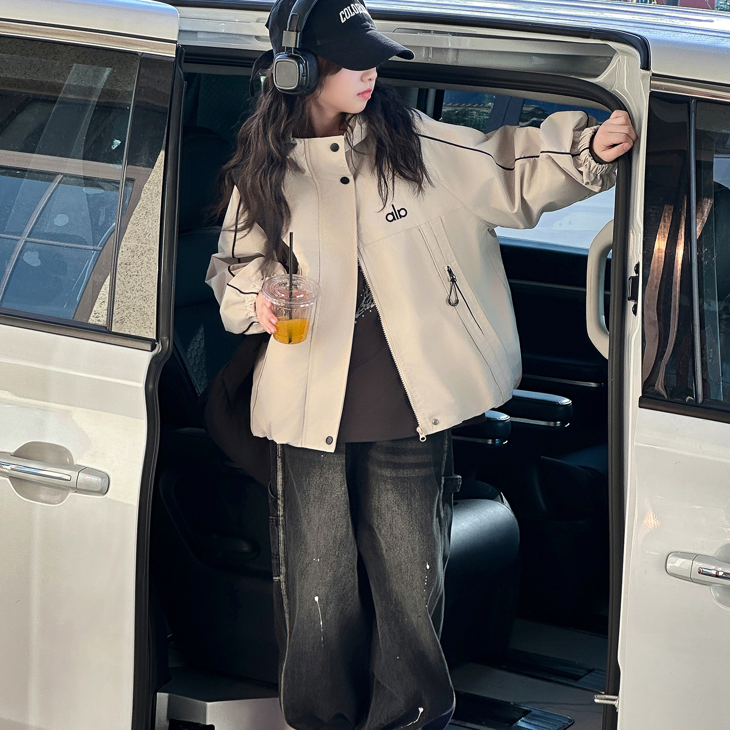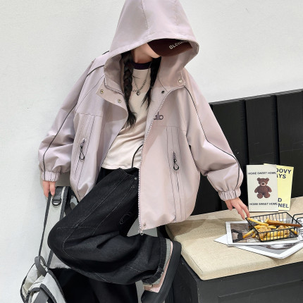 女童外套秋装2025新款洋气大童夹克儿童春秋款女孩超好看连帽上衣